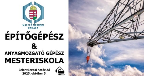 A Magyar Mérnöki Kamara idén előszőr indítja útjára Építőgépész és Anyagmozgató gépész Mesteriskoláját. A képzés október 9-én kezdődik.